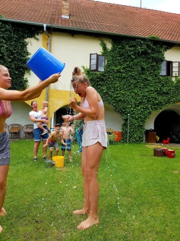 Nejbližší bazén, příjemně chladný a dostatečný velký na plavání. Děti se vyřádí v brouzdališti. Na travnaté ploše rozložte deku, zahrajte si karty a dejte si nanuka.