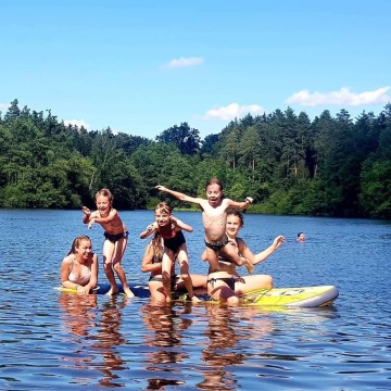 Nedaleké přírodní koupání, rybník jako báseň, ale nečekejte, že budete sami. U rybníku je vyhlášený kemp, výhodou je tedy možnost občerstvení. Před kempem je pláž pro veřejnost. My jsme si to zde vloni užili i s paddleboardem. Pokud se neradi koupete, můžete zde rybařit.